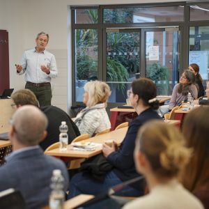 V dopoledním bloku zástupci fakult prezentovali fakultní strategie v oblasti rozvoje, posílení a financování doktorských studijních programů, následně svůj pohled na to, jak JU postupuje jak v řízení doktorských studií, tak v utváření své doktorské školy, představil za skupinu kolegů z Wageningen University prof. Claudius van de Vijver, ředitel The Graduate School for Production Ecology & Resource Conservation (PE&RC). Kolegové z Wageningenu spolupracují s JU už třetím rokem, ve škole doktorských studií vedli letos tři workshopy pro školitele a doktorandy a pomáhají také moderovat diskuse nad koncepčními otázkami univerzitní strategie v oblasti doktorského studia. Součástí shrnutí dopoledního bloku bylo i formulování očekávání, které fakulty kladou na Školu doktorských studií.