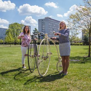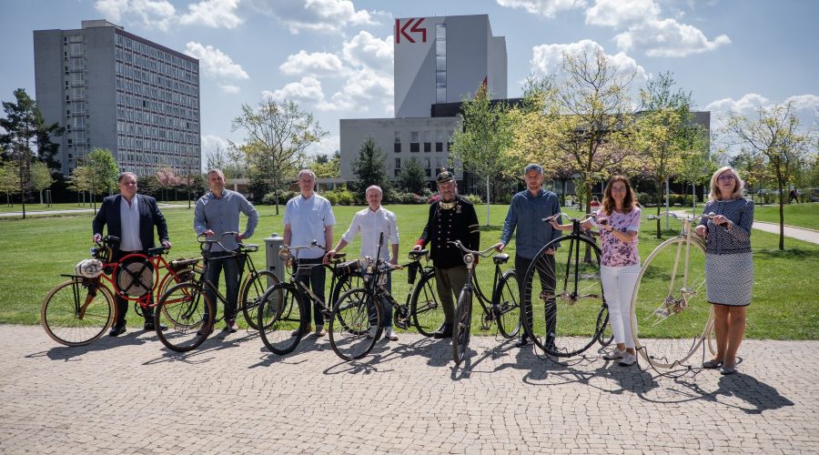 Veliké poděkování patří panu Vlastimilovi Šramovi z KV Roudenské jízdní za zapůjčení nádherných historických kol, některá z nich si až do začátku příštího týdne můžete prohlédnout v přízemí budovy rektorátu. Díky němu a jeho originální sbírce kol mohly vzniknout fotografie na podporu zapojení se do ABC Challenge 2022.