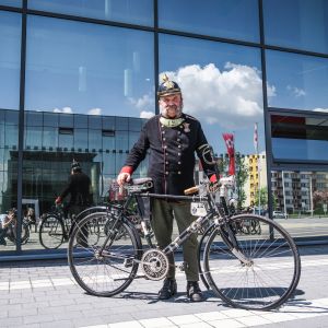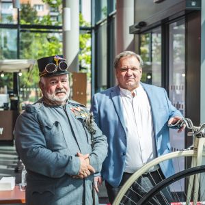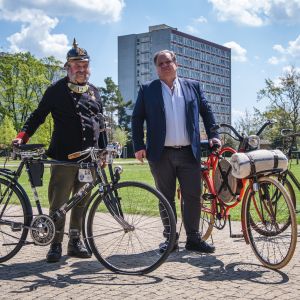 Velice děkuje panu Jiřímu Šindelářovi, který je předsedou rady a kronikářem Českého klubu velocipedistů Podšumavan, z.s. , a který k nám na JU také dorazil na svém historickém kole a v uniformě českobudějovické bezpečností stráže z roku 1898. Setkání s oběma pány pro nás byla velká čest.