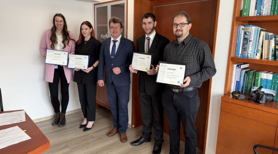 Děkan Fakulty rybářství a ochrany vod JU prof. Tomáš Policar předal certifikáty a smlouvy hlavním řešitelům nových studentských projektů, které uspěly ve výzvě zaměřené na podporu udržitelnosti rybářství, ochrany přírody, krajiny a vod.