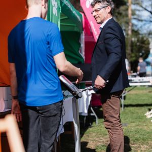 Na pódiu Fanzóny Martin Šeda z Katedry aplikované chemie Fakulty zemědělské a technologické předvedl efektní barevnou science show, která zaujala děti i dospělé.
