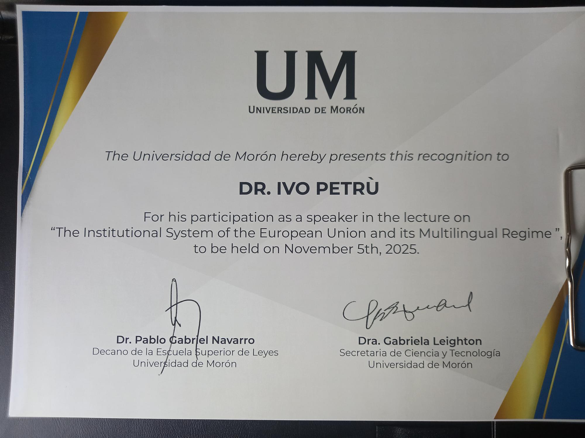 V prvním listopadovém týdnu navštívil dr. Ivo Petrů z Ústavu romanistiky FF JU partnerskou Universidad de Morón v Argentině. S touto argentinskou univerzitou se sídlem na předměstí Buenos Aires rozvíjí FF JU intenzivní spolupráci v pedagogické i vědecké oblasti. Kromě jiného probíhá společný výzkum právního jazyka v projektu budování vícejazyčné databáze právní terminologie LegTerm, který URO FF JU vyvíjí od roku 2020.