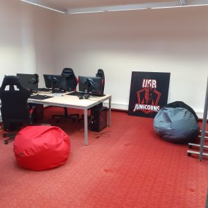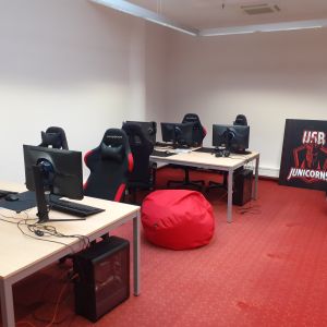 Téměř rok funguje v Akademické knihovně učebna určená pro e-sportovce reprezentující Jihočeskou univerzitu v Českých Budějovicích. Učebna je vybavena 5 herními počítači. Možností pro studenty je stále více a kromě dalšího potřebného vybavení, které se bude dle možností v budoucnu rozšiřovat, byl do učebny pořízen také nový PlayStation.