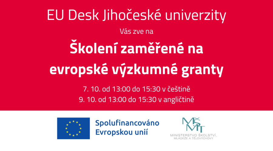 Nově založený EU Desk Jihočeské univerzity letos uspořádá první ze série školení zaměřených na evropské výzkumné granty. Tentokrát to budou granty programu Horizon Europe, přičemž část školení se bude věnovat specificky schématům Marie Sklodowska-Curies Actions (MSCA) a European Research Council (ERC).
