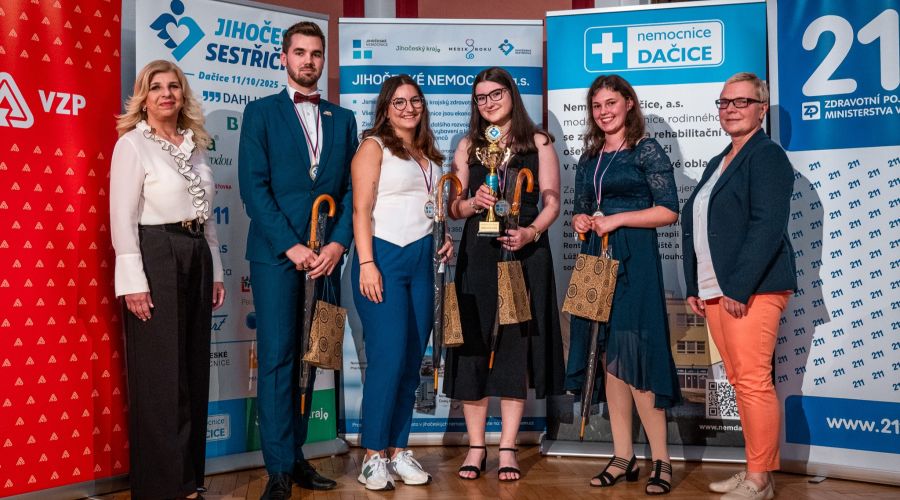 Po celý den soutěžícím na místě fandili jejich vyučující z Ústavu ošetřovatelství, porodní asistence a neodkladné péče. Děkanka ZSF JU Ivana Chloubová měla z tak výrazného úspěchu velkou radost a všem poděkovala za skvělé výkony. „Jsem velmi hrdá na to, jak všechny studentky a studenti skvěle reprezentovali naši fakultu, zároveň chci poděkovat i kolegyním a kolegům, že je na tuto soutěž tak dobře připravili. Přijeli jsme jim do dačické nemocnice fandit a potvrzuji, že všechny disciplíny byly opravdu pěkně zorganizované. Na jednom stanovišti jsme zrovna zastihli jeden z našich týmů a moc nás potěšilo, když jsme tam od zdravotníků slyšeli chválu, jak jsou šikovní a empatičtí,“ řekla. Pro ZSF JU jsou tyto nemocnice významnými klinickými pracovišti, kam studenti chodí na praxe.