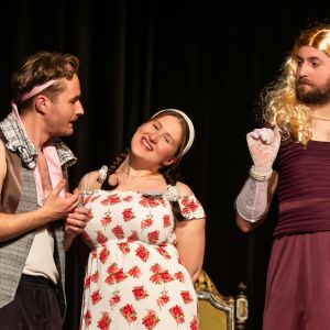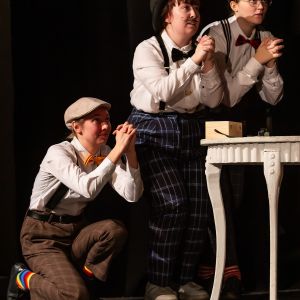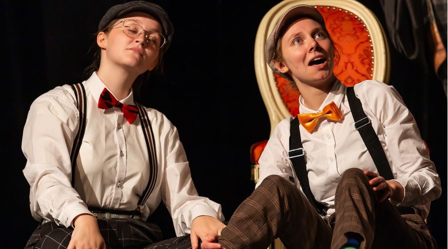 Záměna mužských a ženských postav zde není ničím výjimečným, mimo jiné je to vděčný zdroj humorných situací. Titulní roli starosty bravurně ztvárnila Anna Flecknová, která je nyní už na konci svého studia. „Chtěli jsme proto Aničce dopřát velký prostor, který si za ty roky působení u nás zaslouží. Její postava má velké množství textu, což ona zvládla skvěle,“ vysvětluje režisér. Úctyhodný rozsah textu je pro divadlo složené z němčinářů FF typický. Loni připravili Sluhu dvou pánů, který byl z tohoto hlediska ještě náročnější než Revizor. „Letos už jsme trochu více škrtali,“ usmívá se Daniel Musílek a prozrazuje, že zásadou je, aby bylo ve vybraném kusu dost rolí pro všechny. Což se zatím pokaždé podařilo a pořád existuje řada vhodných představení, která ještě mohou nastudovat. Demokratický výběr, jaký titul zvolit, se odehraje vždy na začátku zimního semestru – letos se sešlo 17 návrhů.