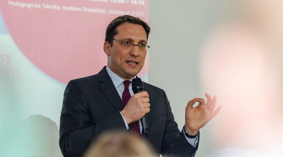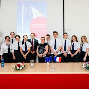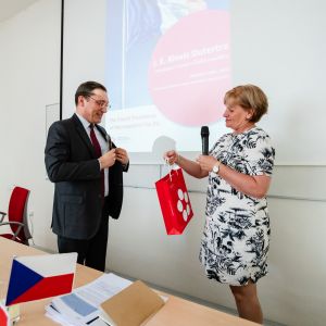 A lecture on "The French Presidency of the Council of the EU" led by the French Ambassador J. E. Alexis Dutertre was held at the USB Faculty of Education on Monday 16 May 2022. The visit to the University campus was also attended by Ms Denise Panková Schránilová – Attaché for Decentralised Cooperation, Mr Eric Playout – Attaché for the French Language and Ms Véronique Debord-Lazaro – Attaché for Science and Higher Education. Together with the Ambassador, they were received by the Dean of the Faculty of Education, doc. RNDr. Helena Koldová, Ph.D., and other representatives of the Faculty of Education and the Faculty of Arts.