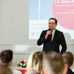 The Ambassador outlined the three main areas of activity of the French Presidency: promoting the agenda of European sovereignty, building a new European growth model and creating a more human Europe. A part of the lecture was also devoted to current EU challenges such as the war in Ukraine and the energy crisis. The lecture was followed by a discussion with students who raised pertinent and varied questions.