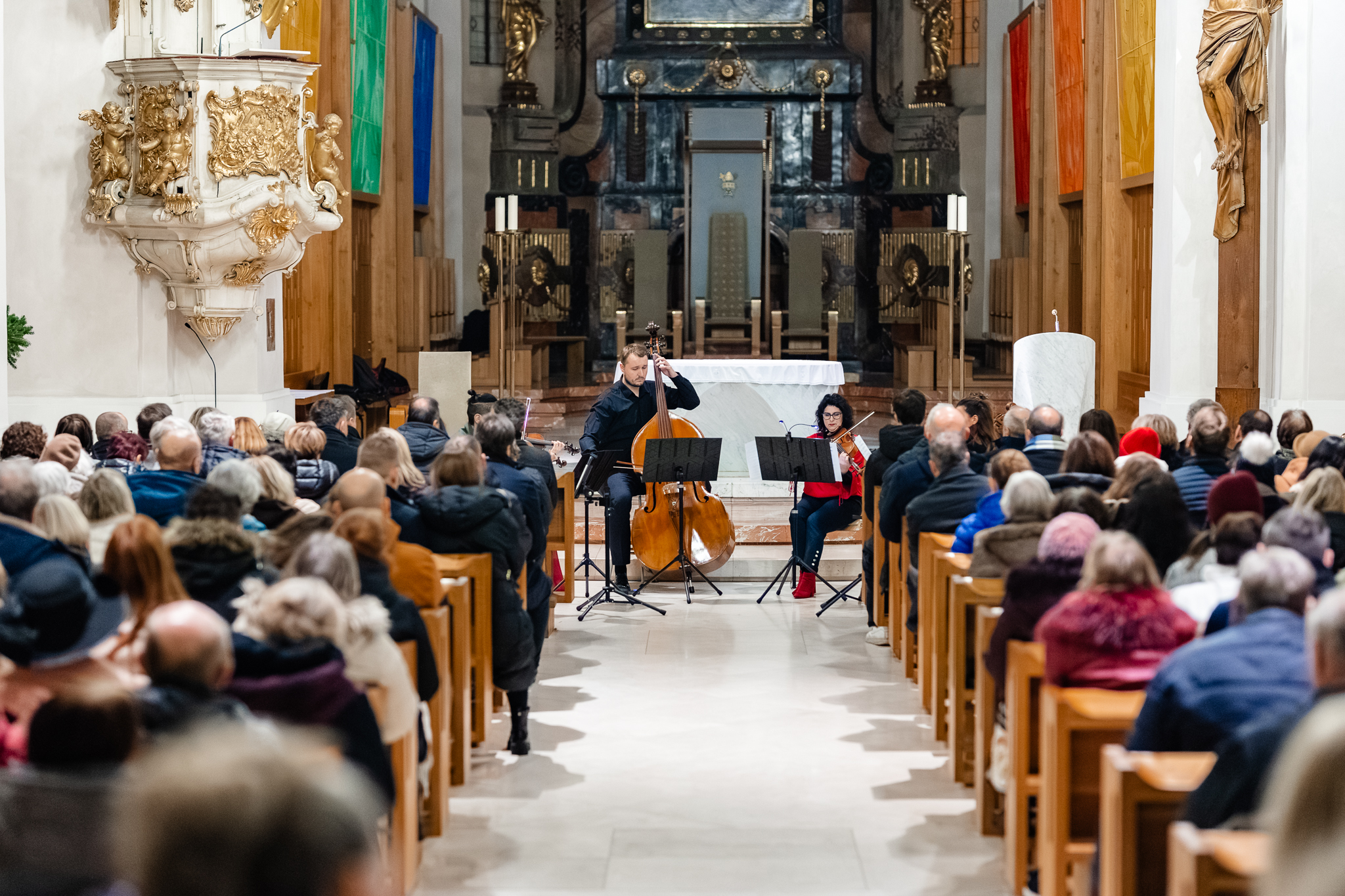 The Cathedral of St. Nicholas in the centre of České Budějovice was filled with employees, students and friends of the University of South Bohemia who came to listen to the traditional Advent concert of the University. This year, the festive evening was performed by two musical groups - the chamber ensemble Bendissimo, composed of members of the South Bohemian Philharmonic and the South Bohemian Theatre, and the Carmína youth choir, which brings together children and young people from kindergartens, primary, secondary and university schools in České Budějovice.