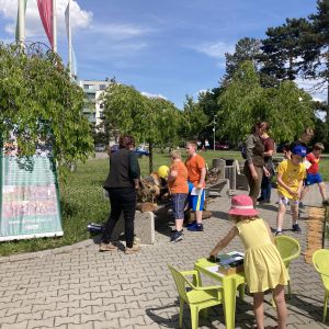 At the start, all the smart kids picked up their Diplomas, for which they collected stamps from each station. What tasks were waiting for our little guests? Horseshoe toss, jumping in a sack, catching fish, carrying eggs, inflating balloons, drawing with chalk, laser shooting range, tractor tour, field crops identification, game and tracks identification in the hunting stand of Dianek and finally a tour of the farm with a horse ride. So there definitely was no boredom.