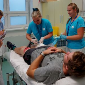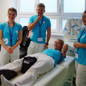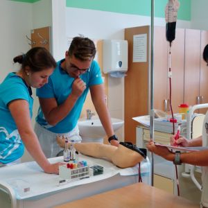 ‘We have a great simulation centre at school where we can try out a lot of things. We trained there. I think we are well prepared from school and practice. Moreover, we are a great team of two general nurses, a midwife and a paramedic,’ said Miroslava Koldová, the captain of the winning team. She specified that her team was only three points short of the maximum of 170 points. The competitors had to show how they could cope with, for example, blood collection, treatment of a newborn, resuscitation, bed preparation, administration of blood derivatives or even catheterisation. It took them until the afternoon to complete the tasks at the individual stations in the Jindřichův Hradec hospital, and Saturday evening was dedicated to the recognition of their achievements in the competition but mainly to the celebration of the medical professions.