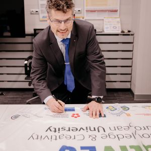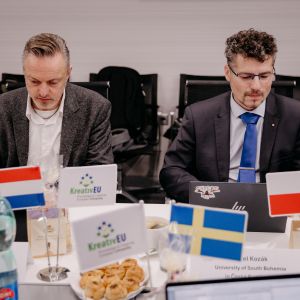 The first meeting of the rectors of partner universities in the KreativEU consortium took place on March 14th at Trnava University in Trnava. The General Assembly of KreativEU is the highest governing body of the consortium and oversees the strategic direction of this European Universities alliance. This meeting marked the formal launch of the entire project. Nine rectors, including Pavel Kozák, the rector of the University of South Bohemia, along with other representatives of member universities, attended the event. As a symbol of unity and collaboration within the new alliance, they jointly raised the KreativEU flag in front of Trnava University.