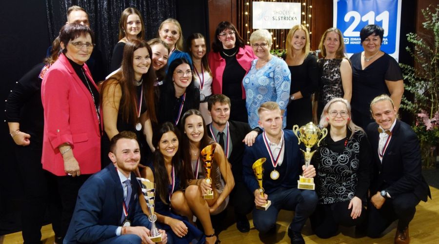Congratulations to our students for their great success in today's South Bohemian Nurse competition. Our three teams completely dominated the eighth edition of the competition, which took place today in the hospital in Prachatice. The students of General Nursing, Paramedics and Midwifery worked together so well that all three teams won medals. Team No 2 (Vojtěch Andrlík, Adéla Schmidtová, Linda Vávrovská and Radka Janissová) took the bronze, team No 3 (Josef Kostěnec, Lucie Eisenwortová, Anna Fikarová and Tereza Pochová) won the silver and team No 1 (Radek Rothschedl, Adéla Plačková, Kristýna Dvořáková and Roman Klabouch) took the first place. Our 'number one' also became the absolute winner of this competition, which every year in a fun way tests the knowledge and skills of teams composed of third-year students of universities and colleges and fourth-year students of secondary medical schools, practical nurse. Congratulations!
