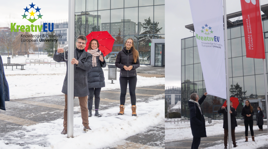 Na Jihočeské univerzitě byla oslava doplněna o slavnostní vztyčení vlajky aliance KreativEU. Vlajku vztyčil rektor JU Pavel Kozák za doprovodu prorektora pro zahraniční vztahy Vladimíra Žlábka, koordinátorky projektu KreativEU Lucie Jerouškové a několika zaměstnanců univerzity. Tento symbolický akt vyjádřil sounáležitost JU s evropským akademickým prostorem a společnou vizí aliance. Během online části programu zazněly také příspěvky zástupců vedení aliance, kteří shrnuli první rok spolupráce, představili dosavadní výsledky a nastínili další směřování KreativEU v oblasti vzdělávání, výzkumu, kulturního dědictví a inovací.